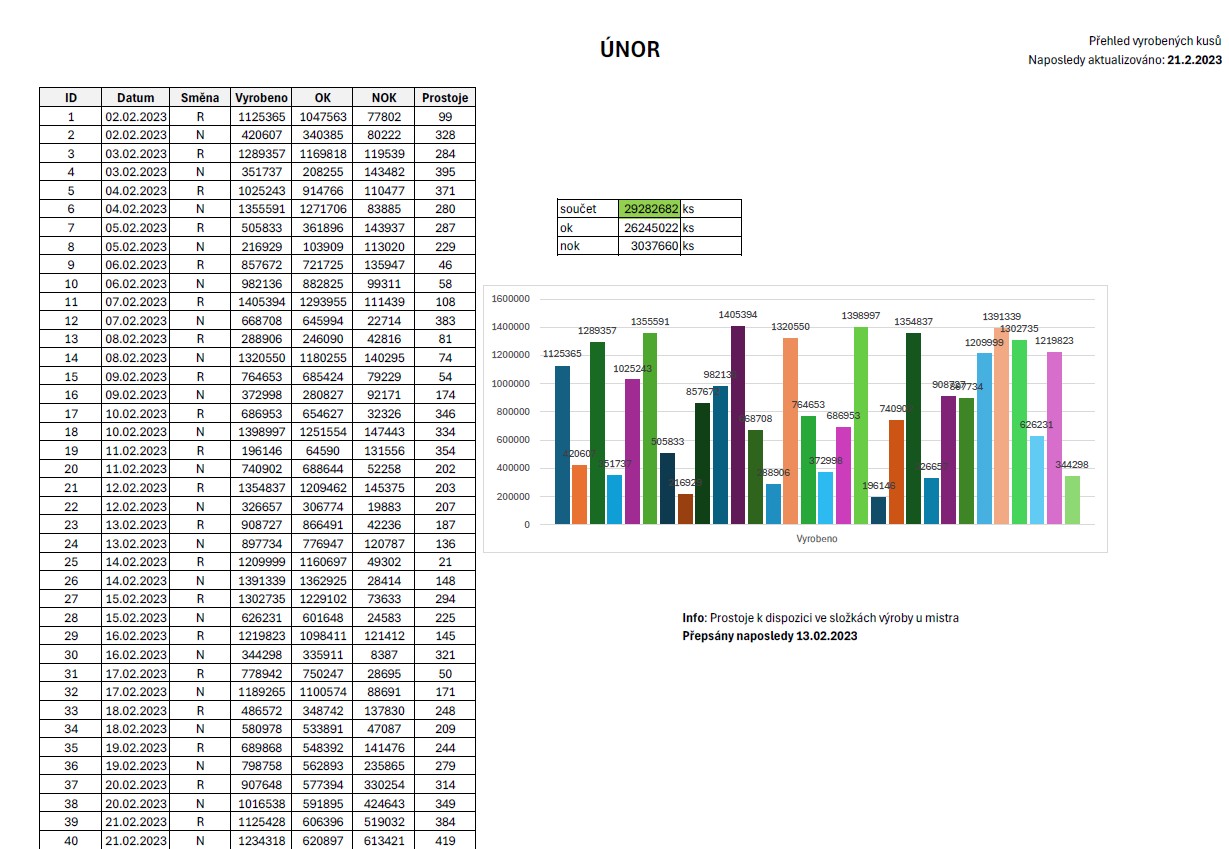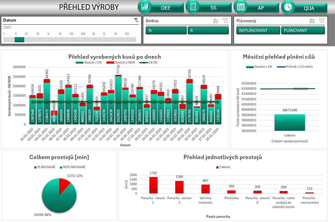 Přehledy, grafy a reporting, kterým rozumí výroba i vedení.
