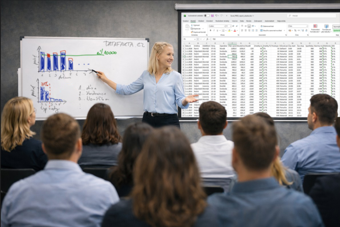 Neučím obecný Excel. Pracuji s konkrétními výrobními daty a reálnými situacemi různých oddělení.